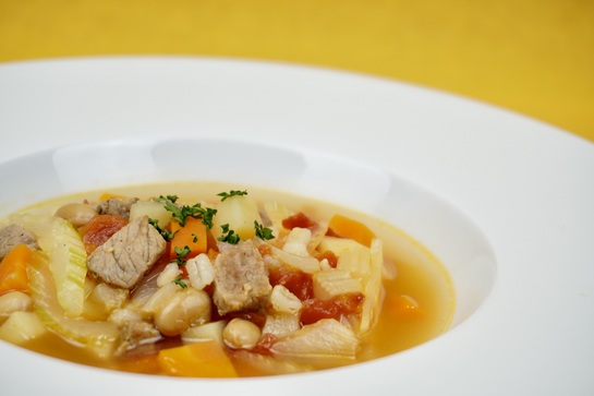 糸島野菜を使ったもち麦入りスープ~トマトスープ~
