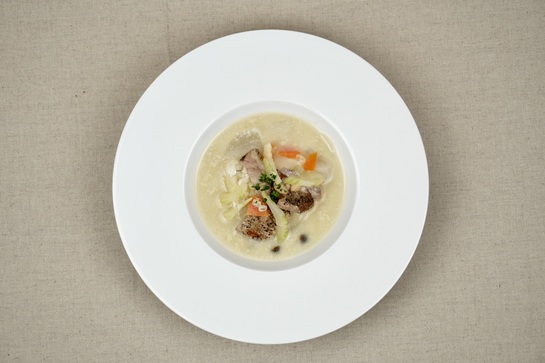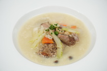 糸島野菜を使ったもち麦入りスープ~豆乳味噌スープ~