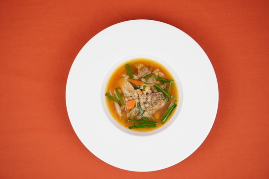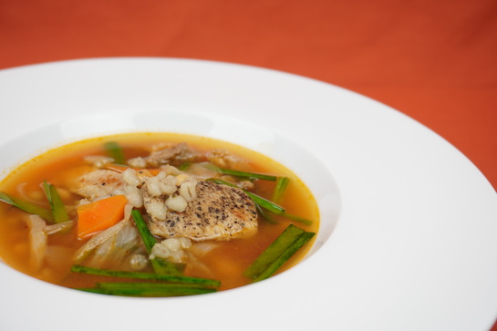 糸島野菜を使ったもち麦入りスープ~ピリ辛チゲ~