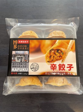 餡には特製の辛味噌で味付けをし、皮には唐辛子パウダーを練りこんだ、辛餃子。旨辛な味わいがやみつきになります。