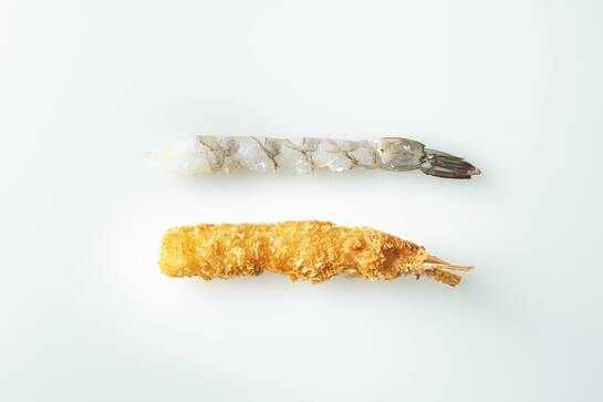 活エビのように鮮魚のバナメイを使用しており、池から上げてから製造加工まで4~5時間しかかけていません。そのため、エビ本来の甘みをお楽しみいただけます。1尾1尾手作業で作っております。
