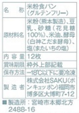 オール国産原材料の米粉100%冷凍パン。 九州産(熊本県)の米粉を使用したグルテンフリー&ヴィーガンの食パン。毎日食べても飽きのこないシンプルな材料を厳選し、お米本来の風味や味を楽しんでいただ...