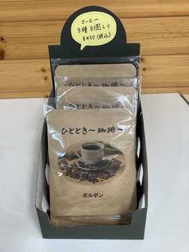 様々なコーヒーの中から試作と試飲を繰り返し、香り、コク、酸味、甘味等の特徴が異なる3種類のコーヒー種を選択し、ドリップコーヒーを作りました。 現在はボルボン(ブラジル産)、エチオピアモカ(エチ...