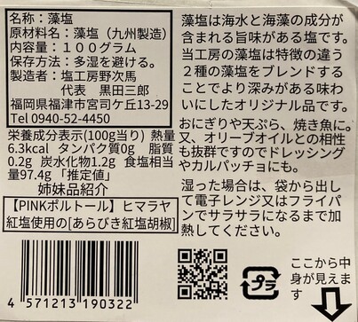 藻塩は海水と海藻の成分が含まれる旨みのある塩です。野次馬の藻塩は特徴の違う2種の藻塩をブレンドすることで、より深みがある味わいにしたオリジナル品です。原材料は全て国産品で無添加です。