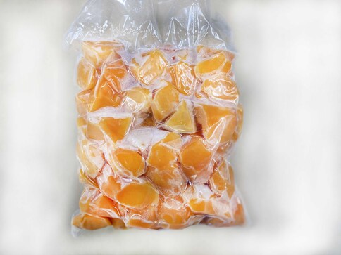 福岡限定品種・甘柿「秋王」を一口大にカットし、急速冷凍をかけ、真空パック・冷凍保存した業務用フルーツです。