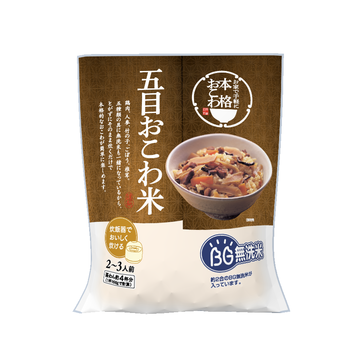 具材は、定番の鶏肉・人参・椎茸・筍・ごぼうを使用。下ごしらえは水加減のみ。ご家庭の炊飯器で、素朴な味わいの本格的なおこわを炊き上げることができます。