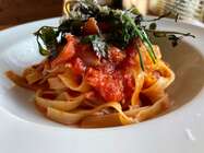出水さくらファームさんの六白黒豚肉をトマトソースで煮込みパスタソースにしました。素材の味を活かすためトマト、豚肉(国内産)、にんにく、赤ワイン、ハーブとシンプルな食材で仕上げました。レストランで...