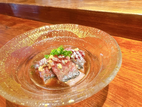 福岡県新宮町の離島・相島で獲れた一本釣りの新鮮な魚を贅沢に使用した海鮮漬けです。濃厚なごまの風味を楽しめるごまだれ、生姜のパンチが効いた醬油だれの2種類の味をご用意しております。季節によって旬の...