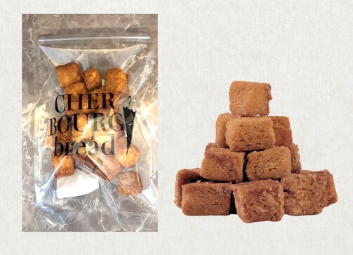 石畳(パヴェ)を思わせる四角いひと口ラスクに、黒糖の深い甘みをじっくり染み込ませました。ひと口ごとにコクのある深みのある味わいが広がり、軽いラスクというより贅沢な焼菓子の趣。不揃いな形もまた個性...