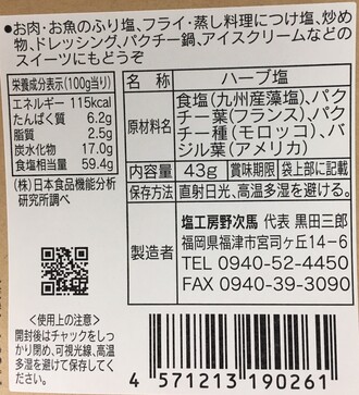 九州産藻塩とハーブのコラボです。完全無添加商品です。 他のハーブソルトとは全く違い、ハーブの体積が多く、香りと彩も美しいのが特色です。 ハーブがふんわりと香り立ち、藻塩との絶妙なバランスがお...